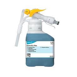 Suma D2 J-Flex jest wysoce skoncentrowanym detergentem do czyszczenia powierzchni twardych w pomieszczeniach kuchennych: podłóg, ścian, drzwi, sufitów i wyposażenia. Preparat ten to optymalna mieszanina anionowych, niejonowych związków powierzchniowo czynnych oraz alkaliów, dzięki czemu skutecznie usuwa tłuszcz i zaschnięte resztki żywności. Zawarte w formule związki kompleksujące umożliwiają stosowanie produktu w wodzie o zróżnicowanej twardości. Zamknięty system dozowania gwarantuje pełną kontrolę nad wydajnością/kosztami - wymaga podłączenia do źródła wody.
